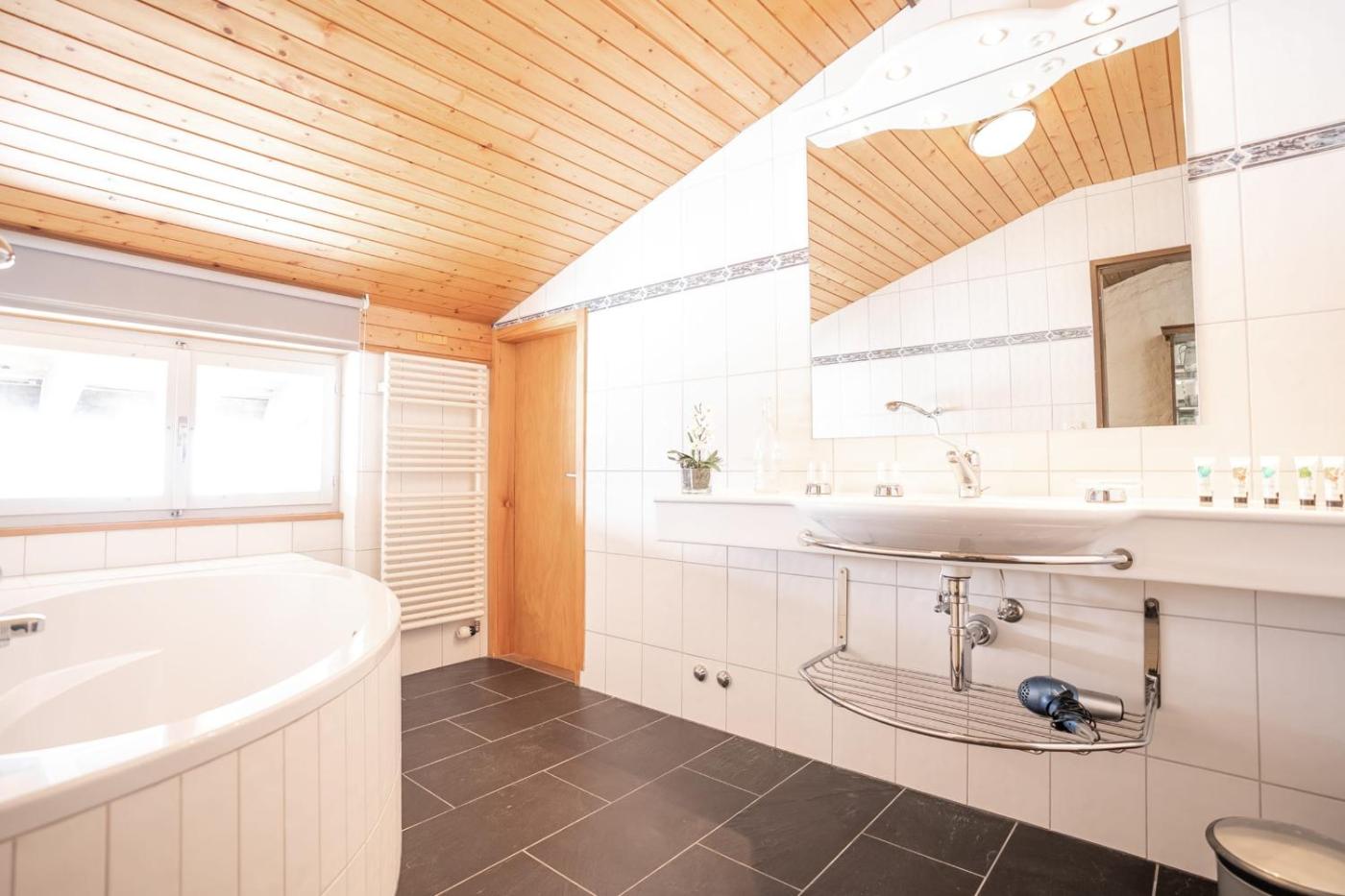 Apartment. This spacious apartment comprises 1 living room, 2 separate bedrooms and 2 bathrooms with a bath and a shower. The apartments kitchen, which features kitchenware, is available for cooking and storing food. The apartment provides a seating area, a dining area, heating and a TV. The unit offers 5 beds.